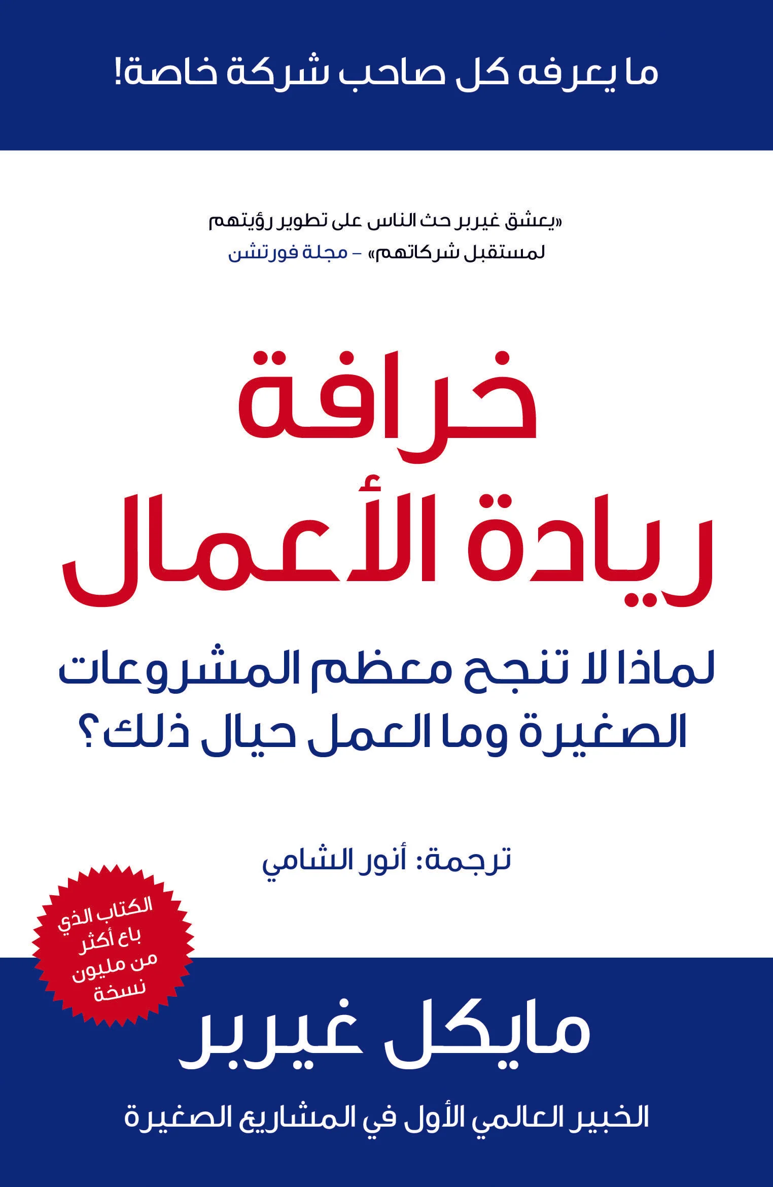 يحتوي الكتاب على أفكار أساسية. وتركز الفكرة الأولى على الخرافة السائدة في الولايات المتحدة وھي ما تسمى بخرافة ريادة الأعمال التي تقول إن المشروعات الصغيرة يقدم عليھا رواد أعمال يخاطرون برؤوس أموالھم بغية تحقيق الربح، لكن الأسباب الحقيقية التي تدفع الأشخاص لبدء مشروع ما لا تتصل إلا قليلا بريادة الأعمال، وإن فھم خرافة ريادة الأعمال وتطبيق ذلك الفھم على تأسيس المشروعات الصغيرة وتطويرھا قد يكون مفتاح أي نجاح