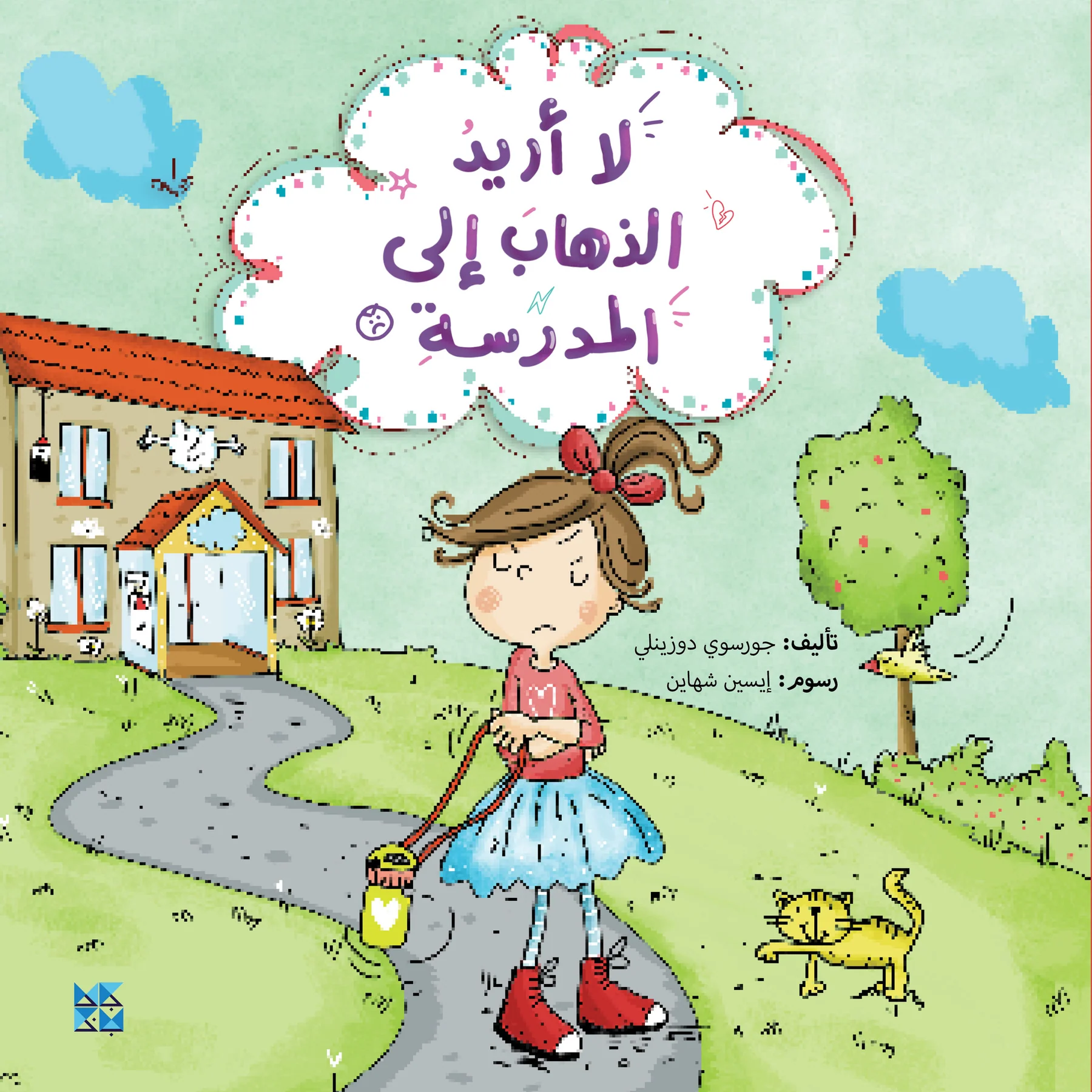 لا تريدُ آيةُ الذهابَ إلى المدرسةِ. تقولُ إنَّ كائناتٍ مخيفةً تعيشُ هناكَ، مثلَ الديناصورِ المفترسِ، والرجلِ الآليِّ الغاضبِ… هل هذا معقولٌ؟ سيذهبُ والدُ آيةَ إلى المدرسةِ ليرى بعينيهِ، فماذا سيجدُ هناكَ؟